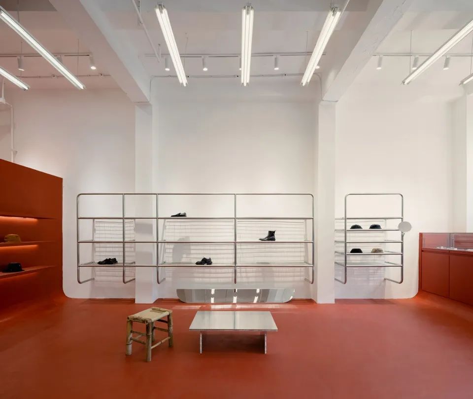 位于杭州南宋御街的ENSHADOWER門店,室內(nèi)一層空間去掉了原有的輕質(zhì)隔斷墻體,保留了原建筑的木質(zhì)結(jié)構(gòu),并重新打磨上漆。